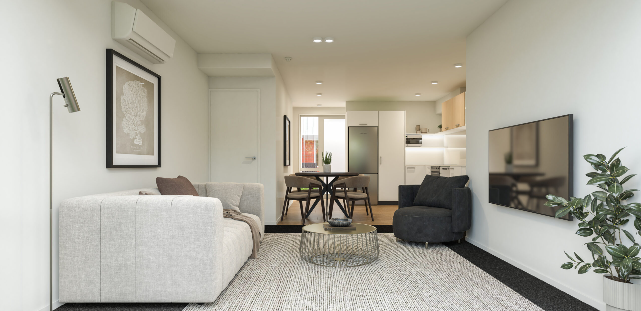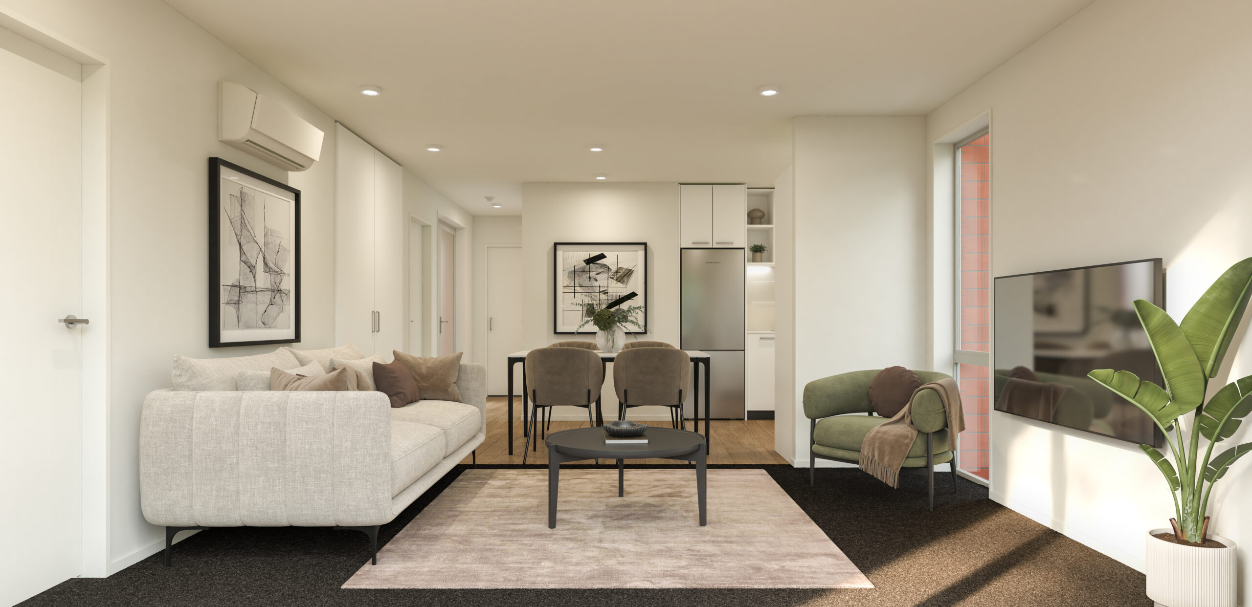 Choose from a range of well-considered 1, 2, and 3- bedroom layouts, each crafted to maximise natural light, space, and flow. Inside, sophisticated interiors feature timeless neutral tones, high-spec finishes, and quality appliances -all designed to complement modern living while leaving room for personal expression.